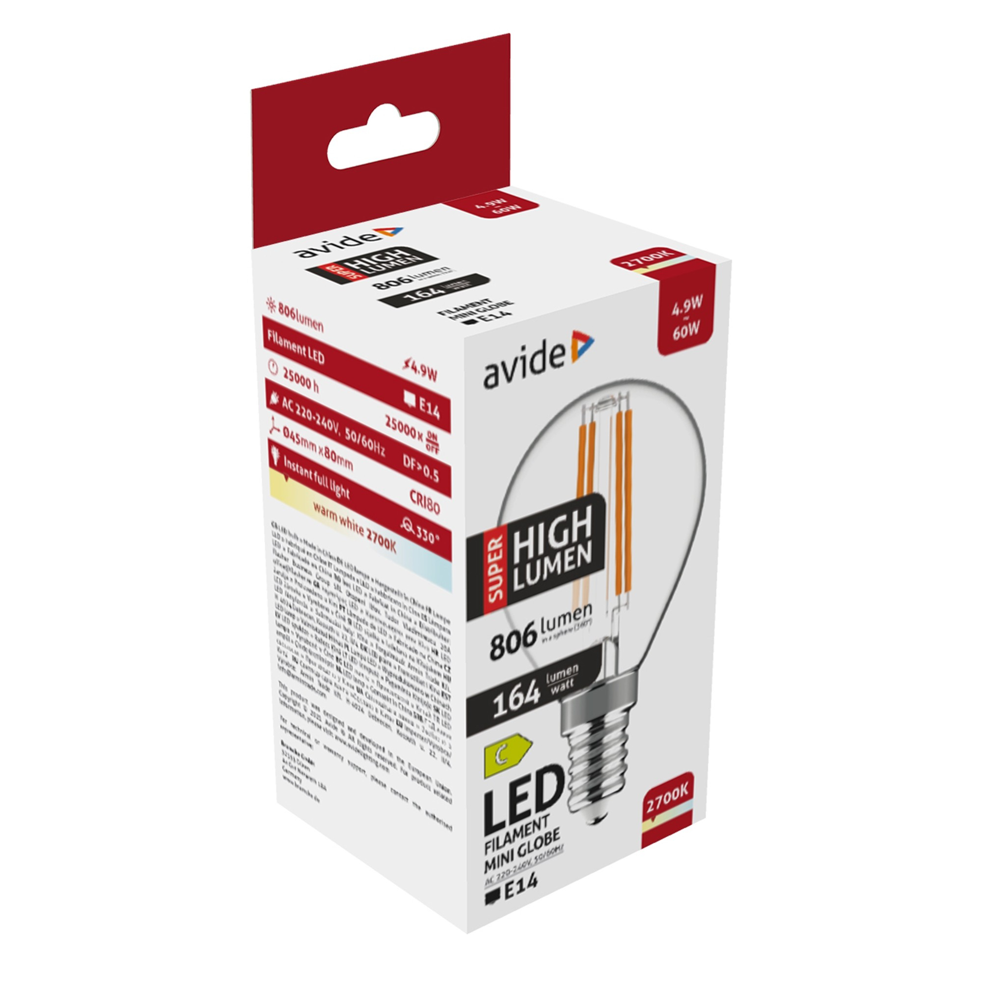 LED Filament Mini Globe 4.9W E14 WW 2700K Super High Lumen