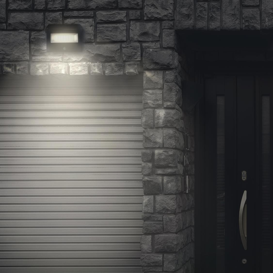 Solar-Flutlicht 4000 K, 2 austauschbare 1800 mAh Li-Ionen-Akkus, kompaktes Solarpanel, 1300 lm, PIR-Sensor, mit Fernbedienung